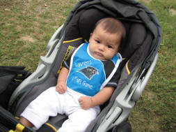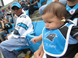 in the Carolinas. As game time drew nearer, we headed to Bank of America Stadium to watch the hometown Carolina Panthers lock horns with the Packers from Green Bay. It was an excellent day for Football and Lauren was visibly enthused about the prospect of her first NFL game. Incidentally, you'd be surprised how many doors open up to a dad carrying a cute little baby with a customized Panthers onesy. We took the elevator, found our way into the 100 level seating area, even free beer from the Tailgaters we passed. Mental note ... Lauren needs to be more involved in the Quest for 31. For more information on the city of Charlotte, North Carolina check out my other reviews by clicking on the links below: NFL: October 25, 2009 - Buffalo Bills vs. Carolina Panthers NFL: November16, 2008 - Detroit Lions vs. Carolina Panthers NFL: October 29, 2006 - Dallas Cowboys vs. Carolina Panthers NFL: Carolina Panthers, Bank of America Stadium - 2010 Stadium Tour NFL: Carolina Panthers, Bank of America Stadium - 2009 Stadium Tour NBA: Charlotte Bobcats, Time Warner Cable Arena - Arena Tour NBA: Charlotte Bobcats, Time Warner Cable Arena - General Information NHL: Carolina Hurricanes, RBC Center - General Information |
