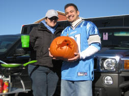 some Steeler mistakes or at least keep the match up respectable.As game time approached, we blew out the candle on my hand carved Detroit Lions Pumpkin (You know I had to carve the lions symbol into a pumpkin for the home team) and bid farewell to the fellas from DetroitTailgate and Banned from E.A.R.T.H. (who rocked out another awesome show, by the way) and we headed over the Ford Field. Crystal and I had our wedding photos taken there earlier this summer, so it