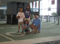 any photo opportunity, I wrangled the kids and set up my tripod.Our tour began with a walk down to the field area as seen from the 100 level seating. At this time of the year, the grounds staff was resodding the field with a hybrid Bermuda natural grass surface that actually ranks as the #2 rated surface in the NFL as judged by the players themselves. Unfortunately, like most stadium tours in facilities preferring a natural grass playing surface, tour guests aren't allowed down on the field. So we had to admire the work of the Bank of America Stadium grounds crew from afar. On other stadium tours, especially the ones that have a FieldTurf or AstroPlay synthetic surface, you can actually run around down on the